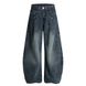 Washed Vintage Scimitar Jeans For Men Street Style Rivet Pleated Design Loose Fit Wide Leg Pants
