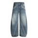 Washed Vintage Scimitar Jeans For Men, Trendy Punk Style, Frayed Edge Patchwork Design, Oversized Banana Wide-Leg Pants