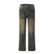 Washed Yellowing Crease Denim Pants Men's Punk Street Fashion Handmade Frayed Pockets Loose Wide-Leg Straight Pants
