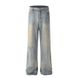Wasteland Style Frayed Vintage Raw Hem Denim Men's Punk Street Fashion Beggar Spray Painted Ripped Straight Loose Pants