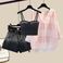 ![]() | XL [recommended 120/140 pounds]/Pink shirt + white vest + black denim shorts three/piece suit | 32,19€ | |