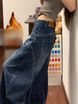 Women’s Flared Scissor-Cut Jeans – Deep Blue, High-Waisted & Fleece-Lined (S-XXL, Winter Fashion Wide-Leg Pants)
