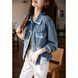 Women’s Lightweight Denim Jacket With Ribbon Trim – Loose Fit, Youthful Style (S-3XL, Bluish/Light Blue)