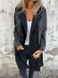 Women’s Loose-Fit Denim Jacket – Lapel Long Sleeve Mid-Length Coat With Splicing Design (S-5XL, Black/Navy Blue)