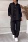 Women's Clothing 2 piece Set Large Size Cotton and Linen Shirt Set High Waist Loose Pants