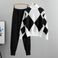 Women's Clothing Casual knitted plaid sweater two-piece set