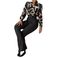 Women's Clothing Casual Suit Printed Stand up Collar Long sleeved Shirt Top Wide leg Pants Two piece Suit