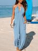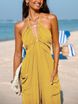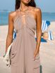 Women's Clothing deep V halterneck sleeveless pleated pocket back tie wide leg cuff long jumpsuit
