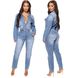 Women's Clothing Denim Jumpsuit Slim Waisted Washed Long-sleeved Jumpsuit