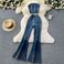 Women's Clothing Denim Suit Summer Sleeveless Tube Top Vest High Waist Denim Flared Trousers