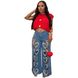 Women's Clothing Elastic Personality Jeans New Hollow Embroidery Love Straight Trousers
