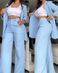 Women's Clothing Elegant Solid Color Split Sleeve Lapel Suit Pocket Straight Pants Suit