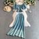 Women's Clothing Elegant Two-Piece Denim Set - Square Neckline With Puff Sleeves & High-Waisted Ombre Skirt (Light Blue, S/M/L/XL)