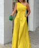 Women's Clothing Fashion 2023 Summer Slant Collar Single Side Lace Irregular Off Shoulder High Waist Pocket Wide Leg Pants Casual Jumpsuit