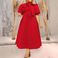 Women's Clothing fashion puff sleeves bow big skirt mid length dress
