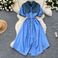 Women's Clothing Fashion Retro Denim Patchwork Short Sleeved Dress For Women Summer Design Drawstring Waist Shirt Long Skirt