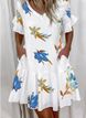 Women's Clothing Fashion Short Printed Ruffle Pocket Dress for Women