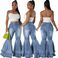 Women's Clothing Fashion Versatile Wide Leg Washed Denim Stretch Bell Pants