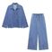 Women's Clothing Fashion Washed Blue Denim Tops Straight Trousers Set