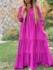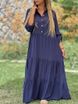 women's clothing fresh and sweet lapel solid color swing long sleeves casual cotton and linen long dress