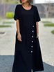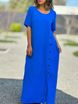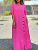 women's clothing fresh and sweet round neck solid color fashion short sleeve leisure cotton and linen long dress