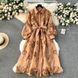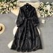 Women's Clothing heavy embroidery hollow flower buttoned slim fit mid length puff sleeve dress