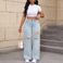 Women's Clothing High Quality Temperament Ripped Wide Leg Pants Jeans