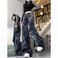 Women's Clothing Hip Hop Pants Trendy Brand Cool Street Style Graffiti Printed Jeans Dragon Year Outfit Flared Straight Pants