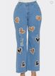 Women's Clothing Hollow Love Hand Made Nail Diamond Personalized Trendy Jeans