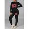 Women's Clothing Large size fat woman autumn and winter women's clothing printed personality casual two piece suit