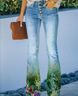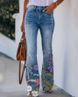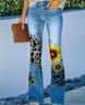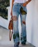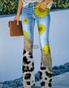 Women's clothing large size women's casual pants art flower pattern pants