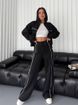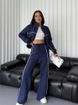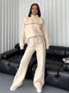 Women's Clothing leisure suit long sleeved half high collar cardigan sweater lace up striped trousers