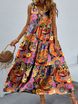 Women's Clothing long skirt loose casual floral casual V neck vest big swing dress