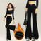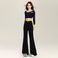 These low-rise flared jeans sculpt legs with a subtle trumpet hem, balancing comfort and sophistication.
