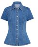 Women's Clothing Modern Style Denim Short Sleeved Button High Waist Skirt Suit