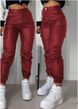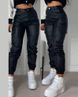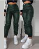 Women's Clothing Motorcycle Zipper Pleated Pocket Fashion PU Casual Patch Pocket Tight Leg Pants