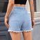 Women's Clothing New Elastic Waist Drawstring Casual High Waist Raw Edge Denim Shorts For Women