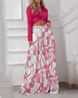 Women's clothing new printed casual suit lapel sexy strap shirt high waist wide leg pants two piece suit