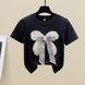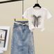 Women's Clothing new slim fit bow short sleeve + hot diamond split denim skirt ins