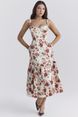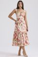 Women's clothing new sweet and spicy style floral mid length skirt backless sleeveless suspender dress