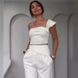 Women's Clothing Oblique Collar Halter Slim Fit Top High Waist Straight Pants Set
