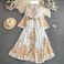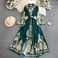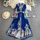 Women's clothing palace style temperament trumpet long sleeve lapel waist single breasted a-line positioning print dress dress for women