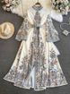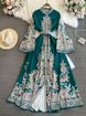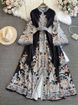 Women's clothing Palace Style Trumpet Long Sleeve Stand Collar Waist Slim Single Breasted A-line Positioning Print Dress Dress For Women