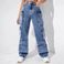 Women's Clothing Pants High Waist Flap Pockets Women's High Waist Cargo Pants With Flap Pockets - Loose Fit Denim Workwear Pants For Street Style