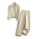 Women's Clothing pink hooded sweatshirt wide leg pants two piece suit