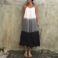 Women's clothing plus size women's new style large hem skirt black and gray gradient tie dye suspender dress
