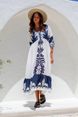 Women's clothing printed drawstring dress five-point sleeves fashionable loose casual