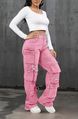 Women's Clothing Relaxed Fit - Streetwear Denim Pants With Multiple Pockets, Stretch Comfort, Washed Finish (Black, Dark Blue, Light Blue, Pink)