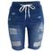 Women's Clothing Ripped Mid Waist Elastic High Elastic Medium Washed Blue Jeans Shorts