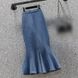 Women's Clothing Ruffled Denim Skirt Autumn And Winter High Waist Slim Elastic Slim Fit Split Hip Fishtail Midi Skirt